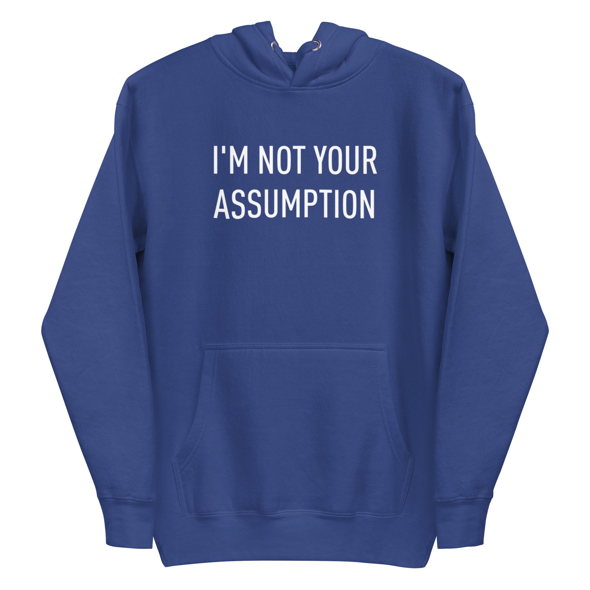 Classic Hoodie w/ Signature "I'M NOT YOUR ASSUMPTION" print across the front chest.